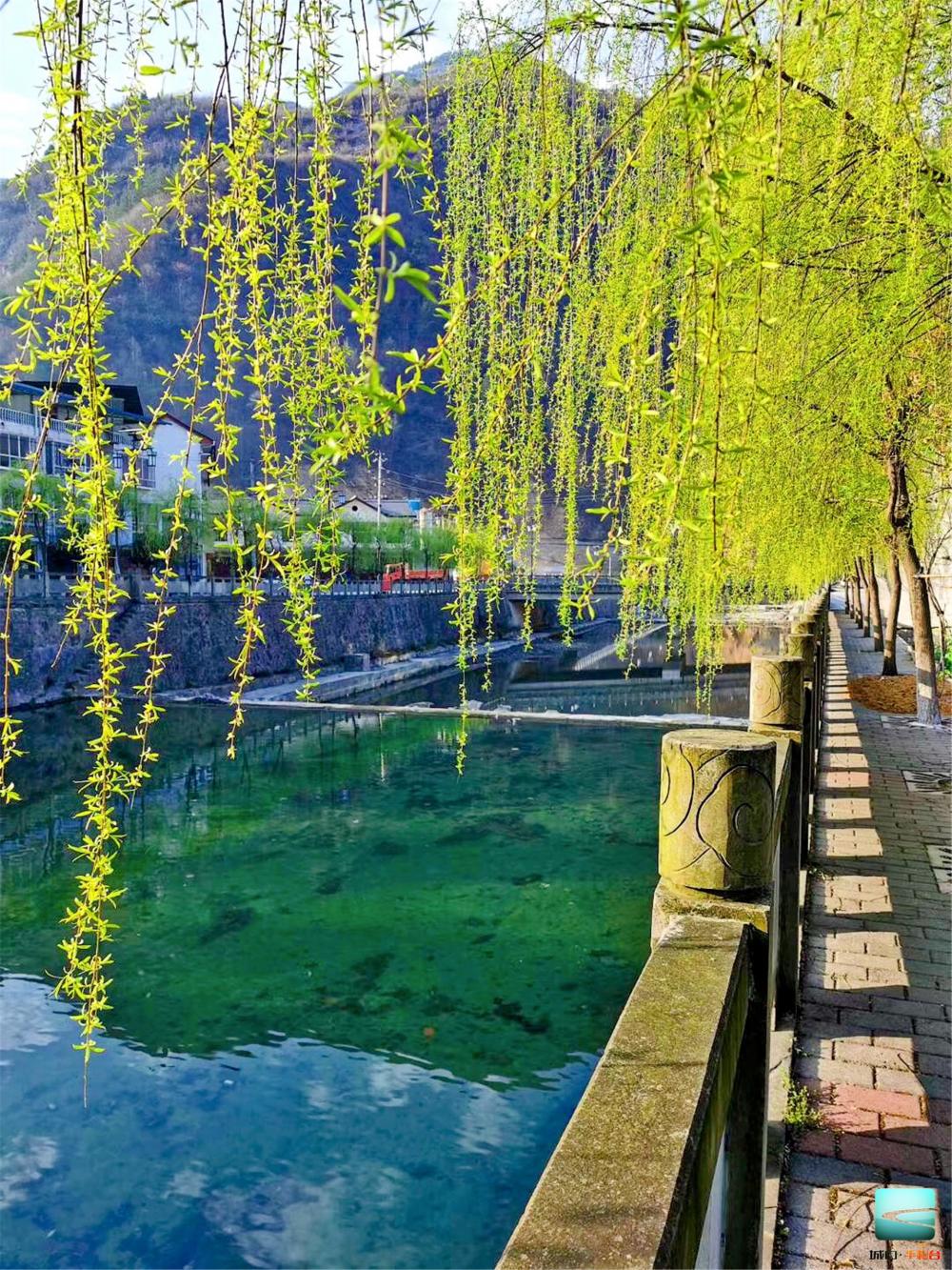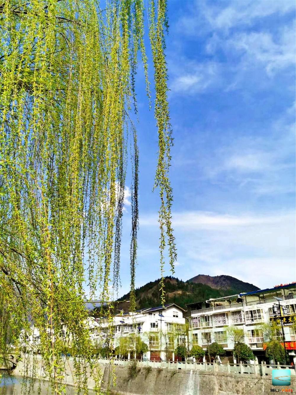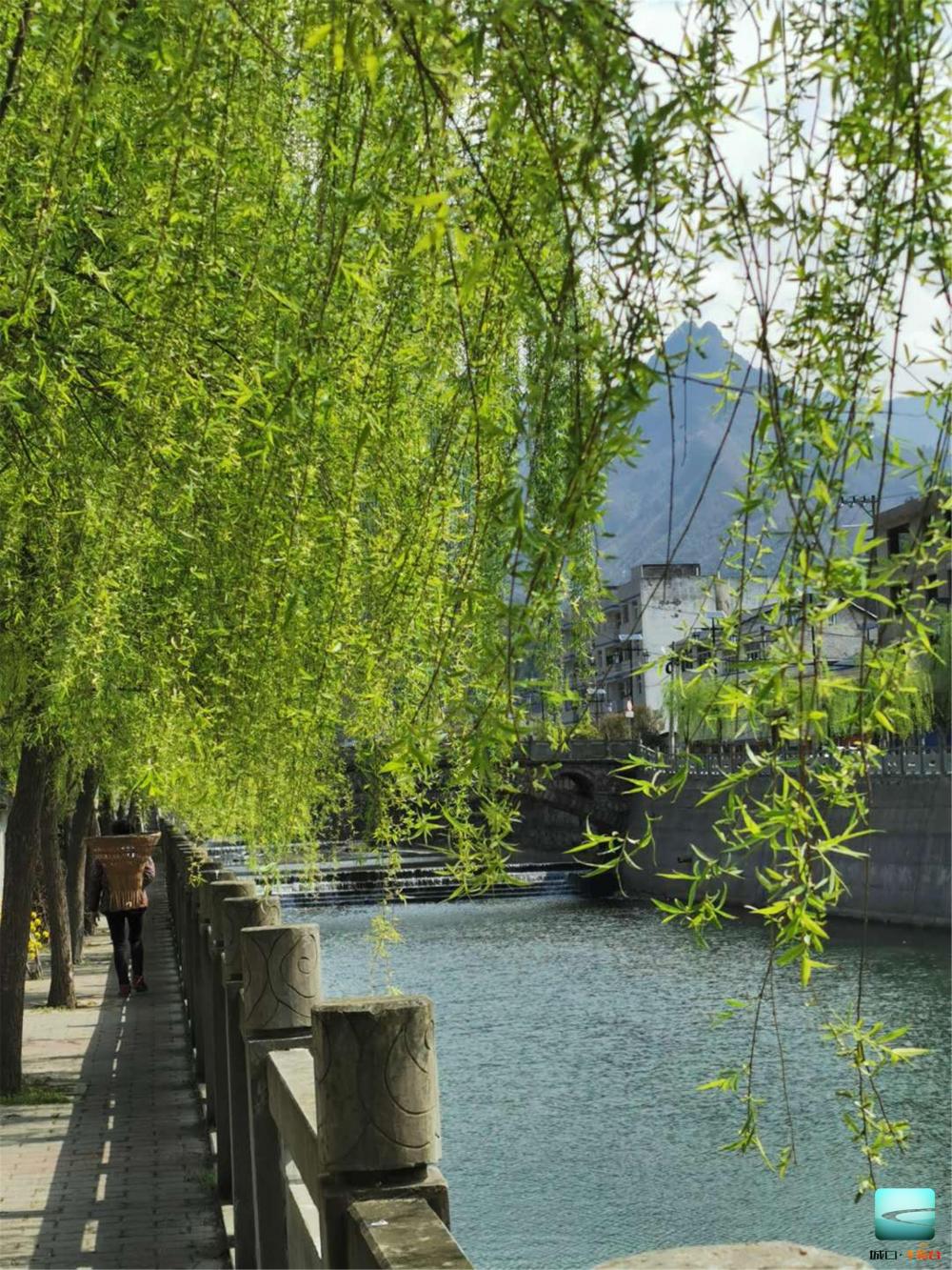 场镇河岸边柳树成荫