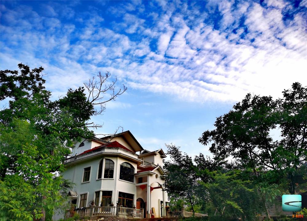 一幢小别墅掩映在青山之中,在蓝天白云的映衬下,显得格外美丽。