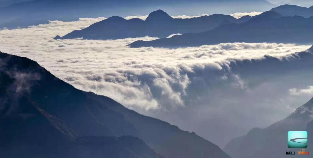 晨曦成片的云雾缠绕在山间,形成茫茫云海。而此刻的峰峦瞬间波澜壮阔,一望无边,在人间也能一览天宫玉海琼池景象。