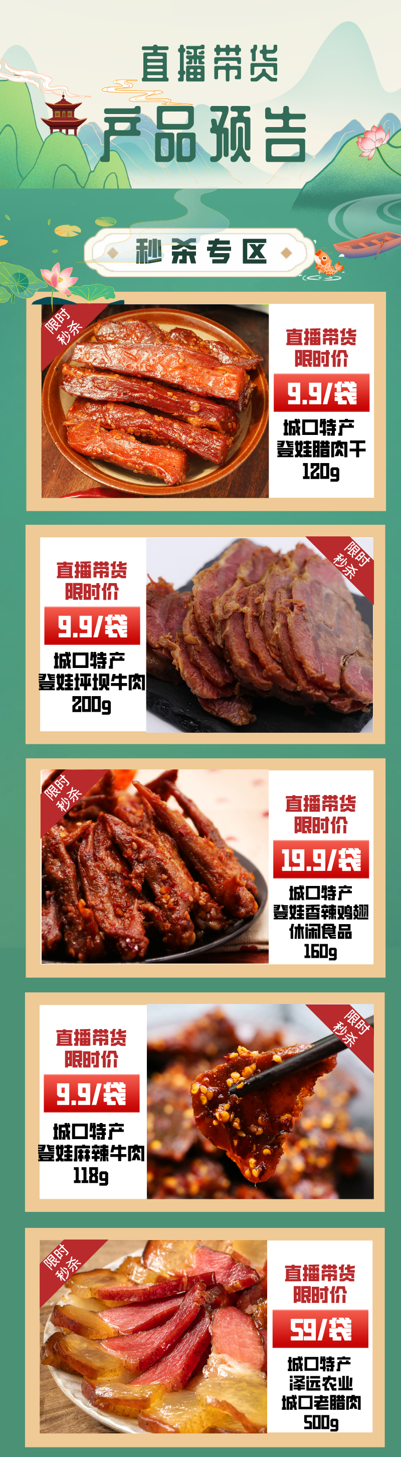 直播中,主持人会对城口美食、农特产品、旅游商品、文创产品等一一进行推介。