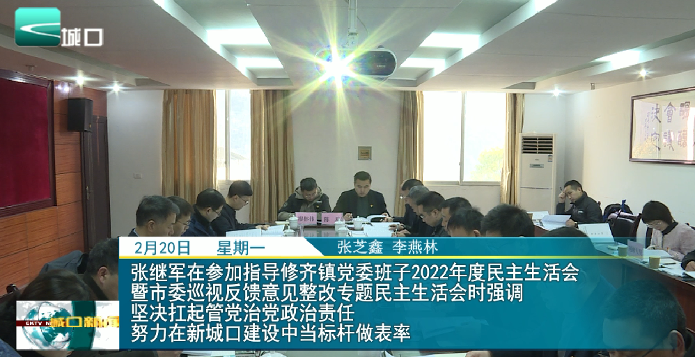 张继军在参加指导修齐镇党委班子2022年度民主生活会暨市委巡视反馈意见整改专题民主生活会时强调 坚决扛起管党治党政治责任 努力在新城口建设中当标杆做表率