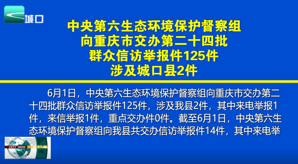 中央第六生态环境保护督察组向重庆市交办第二十四批群众信访举报件125件 涉及城口县2件