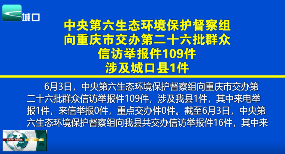 中央第六生态环境保护督察组向重庆市交办第二十六批群众信访举报件109件 涉及城口县1件