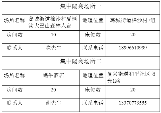 【权威发布】关于公布密切接触者集中隔离场所具体地点的通告